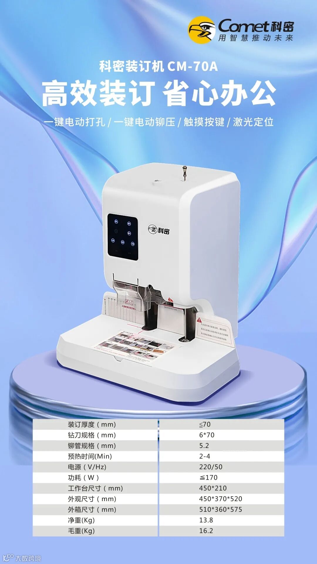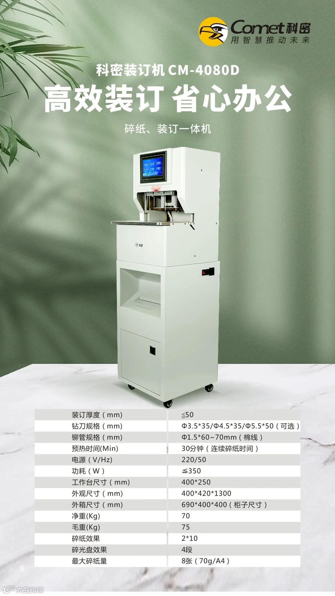 装订厚度55mm,数字显示、自动夹紧,过热保护。