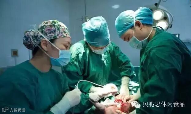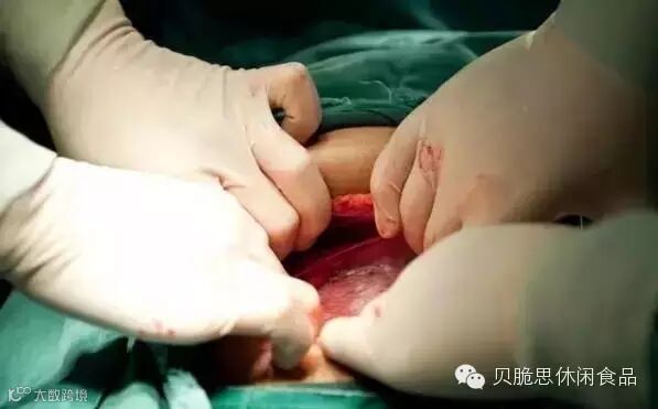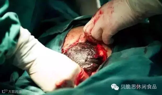 切开子宫以后露出了最后的一层膜,这个时候基本上都可以看到暖暖的头了。此时,两名助产士需要扩开肚子上的伤口,以便于医生把手伸到里面去抱住暖暖的脑袋。
