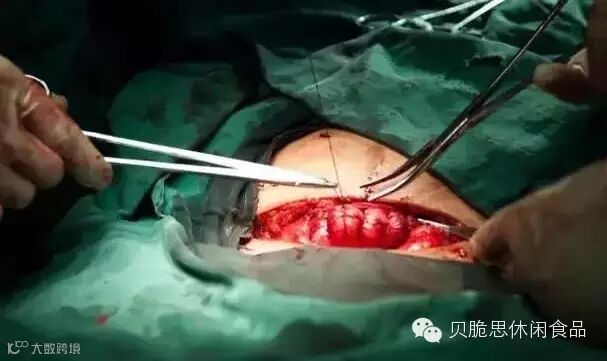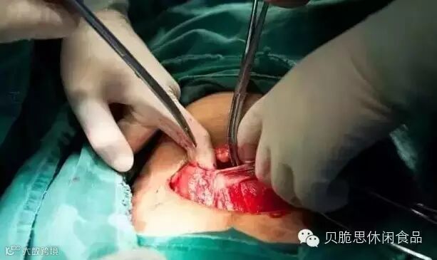 表皮切开以后,医生用夹子固定住一边开口的位置,使得开口不至于迅速合上。