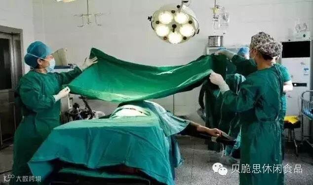 助产士们用一条绿色的布把我的上半身和腿盖起来,只剩下肚子的手术区域。这样我就看不到她们在干什么了,只能凭我听到的声音和还唯一剩下的触觉去猜测已经进入了哪一步。