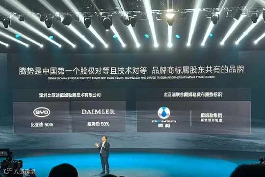 腾势品牌是比亚迪和戴姆勒共同设立的合资公司,定位高端新能源汽车品牌,双方的合作可追溯至2010年。这一年3月,比亚迪和戴姆勒签署合作协议,双方以各自持股50%的方式在深圳成立国内首个新能源合资公司,戴姆勒也借此机会进军中国新能源市场。