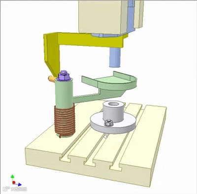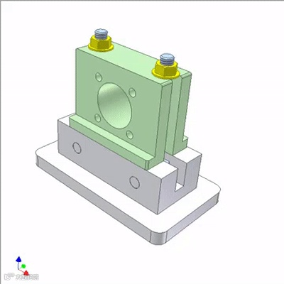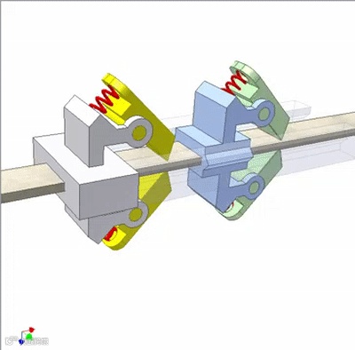 此机构为一款弹簧夹定位机构设计模型图,该装置由支撑柱、凹槽板、弹簧夹、限位块等零部件组成。