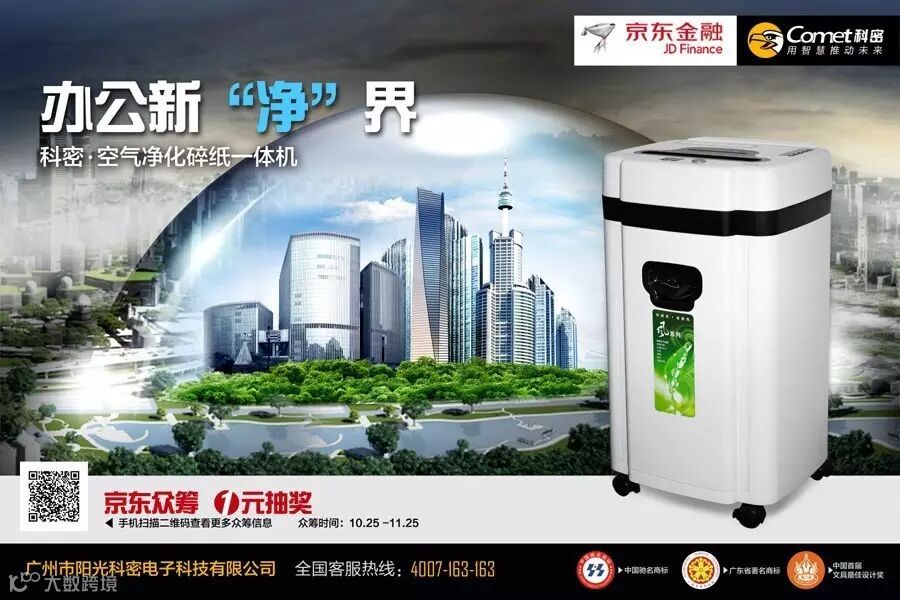 经过长达半年的筹备,10月25日,阳光科密清风碎纸空气净化一体机正式登陆京东众筹,开启阳光科密清风为期30天的“办公新净界”京东众筹之旅。阳光科密清风碎纸机众筹目标设定为1000000,众筹价1元起!