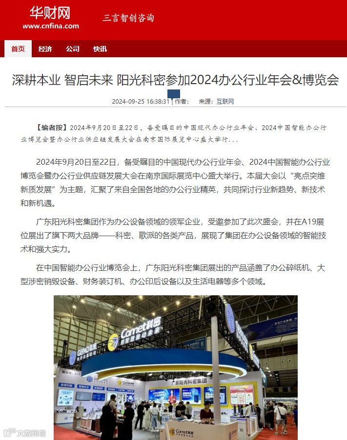 一直以来,各主流媒体平台也留下了阳光科密大事记的身影。2月,阳光科密广宁产业园首台碎纸机顺利下线;5月,广宁产业园投产庆典正式举行;9月,阳光科密作为副会长单位参加办公行业年会展览;10月,广东省省长王伟中莅临阳光科密广宁产业园调研;11月,省市保密局调研阳光科密广宁产业园……