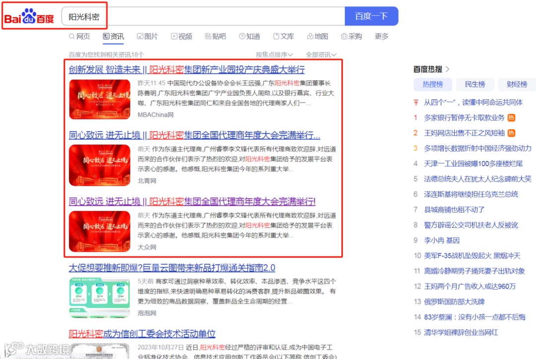 一众主流媒体平台对阳光科密的宣传