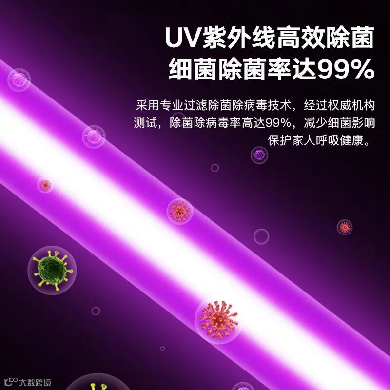 科密空气净化器内设UV紫外线灯,除菌率高达99%,能够灭杀大部分细菌,为您创造一个洁净、安全的环境。