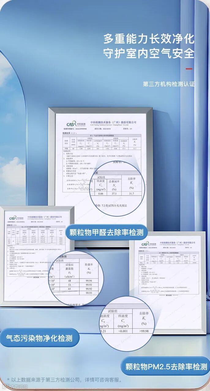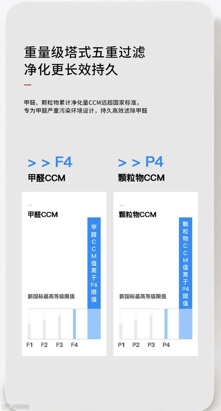 科密CA-500空气净化器的颗粒物CCM等级为P4,为最高等级。能够去除甲醛的科密CA-750,颗粒物CCM等级P4,甲醛CCM等级F4,且远超国际标准。