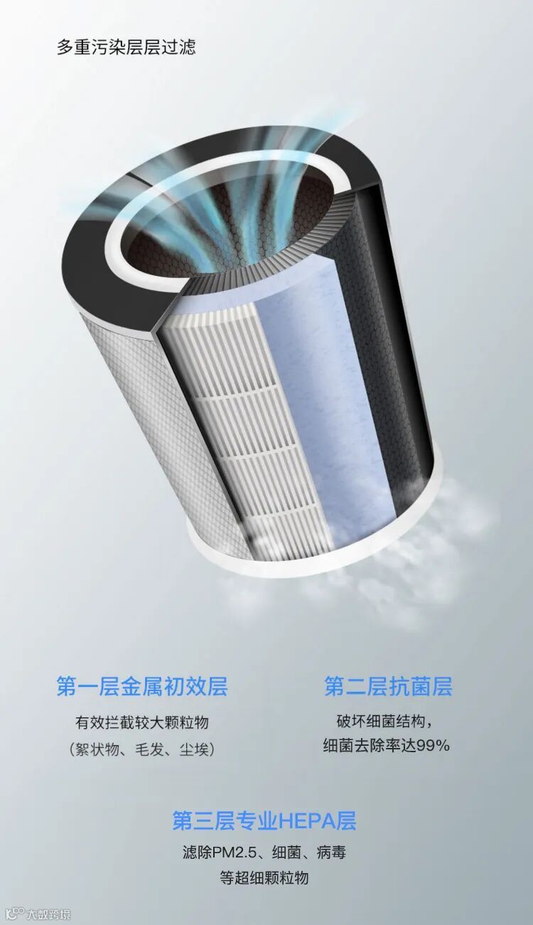 HEPA技术是一种高效空气过滤器技术,主要用于捕捉和过滤空气中的微小颗粒物,如PM2.5和烟雾颗粒。HEPA的全称是“高效空气颗粒过滤器”(High Efficiency Particulate Air Filter),它设置了层层叠叠的纤维,通过拦截、撞击和扩散等效应阻止颗粒物通过。