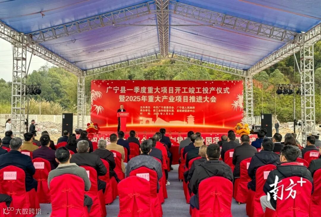 蛇年新征程,奋楫向未来。2月8日,肇庆广宁迎来产业发展的“开门红”,举行广宁县一季度重大项目开工竣工投产仪式暨2025年重大产业项目推进大会,集中开工项目7个,竣工项目4个,投产项目4个,计划总投资额约41.5亿元。副市长谢桂坤,县领导陈超常、何剑才、梁妙练、涂雄文、鲁言波、杨洪章、唐志鹏等出席仪式。
