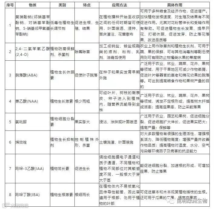 我国从50年代起开始生产和应用植物生长调节剂。目前,在我国登记使用的植物生长调节剂有30多个品种其主要作用有:延长贮藏器官休眠/打破休眠促进萌发、促进生根、促进/抑制茎叶芽生长、促进/抑制花芽形成、疏花疏果/保花保果、诱导产生雌花/雄花、延长花期、切花保鲜、形成无籽果实、促进果实着色、促进/延缓果实成熟、延缓衰老、提高氨基酸/蛋白质含量/含糖量、增加脂肪含量、提高抗逆性等。