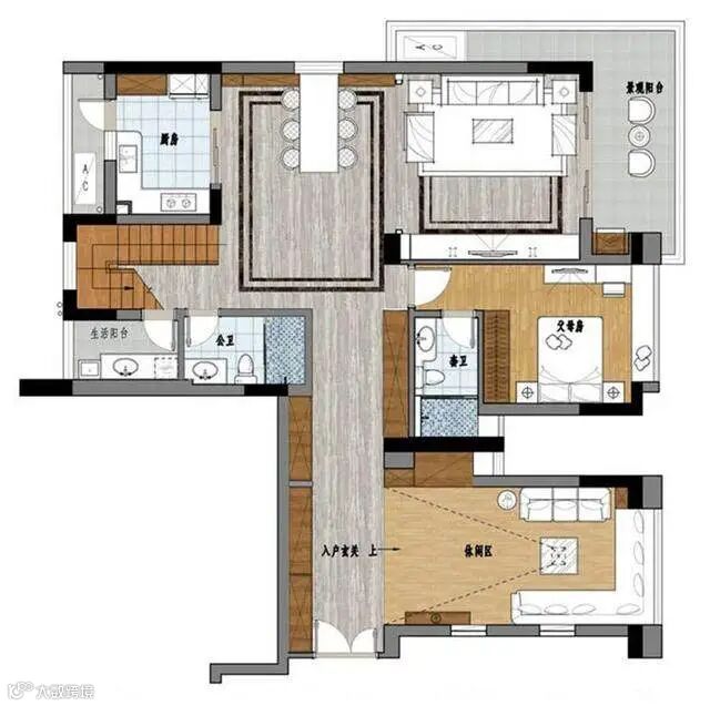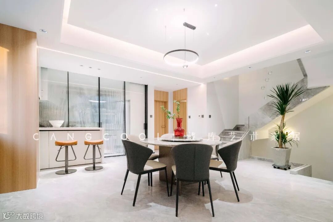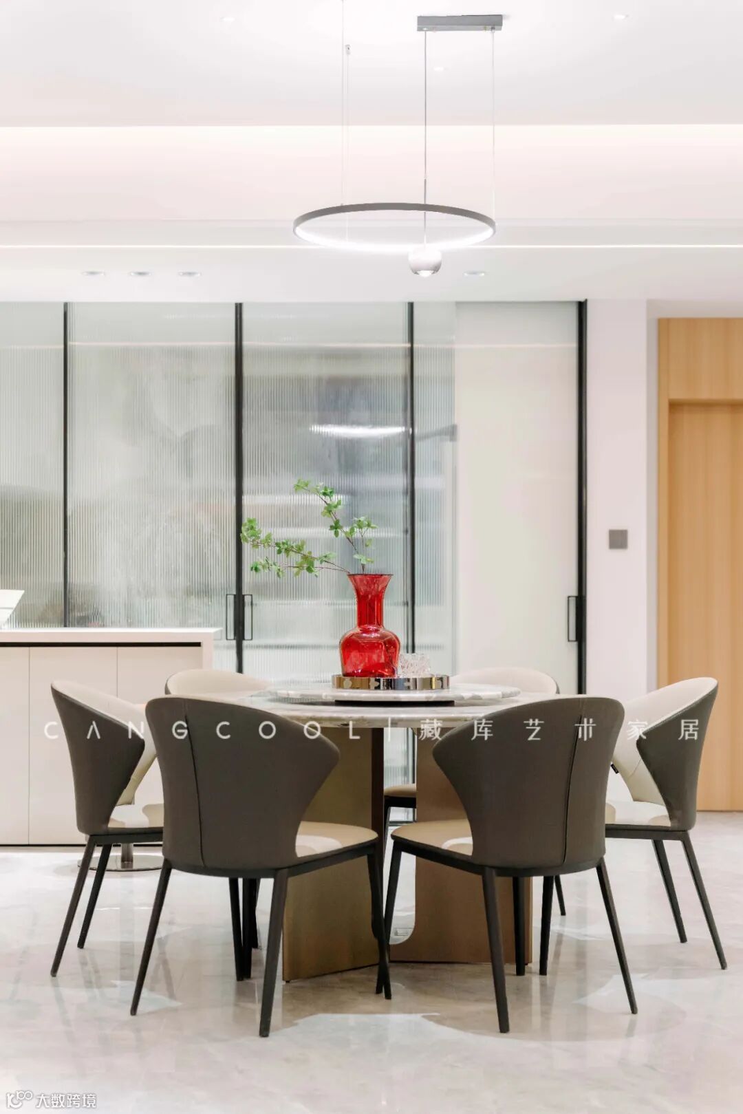 空间的状态、自然的汇入、空气的流动,光从各个面进入行经的轨迹,交汇成了空间的生命力。本案屋主想要有质感,有自然气息的家,藏库设计师将现代简约元素融入到空间里,营造品质感与简约的生活理念。