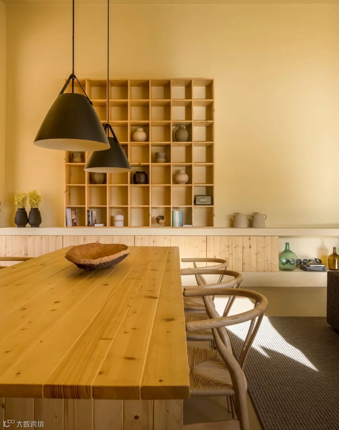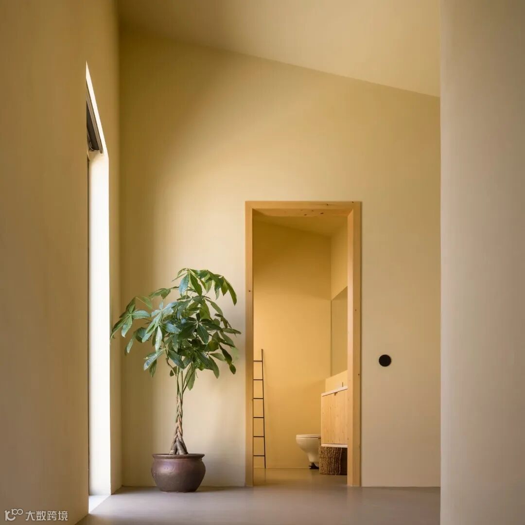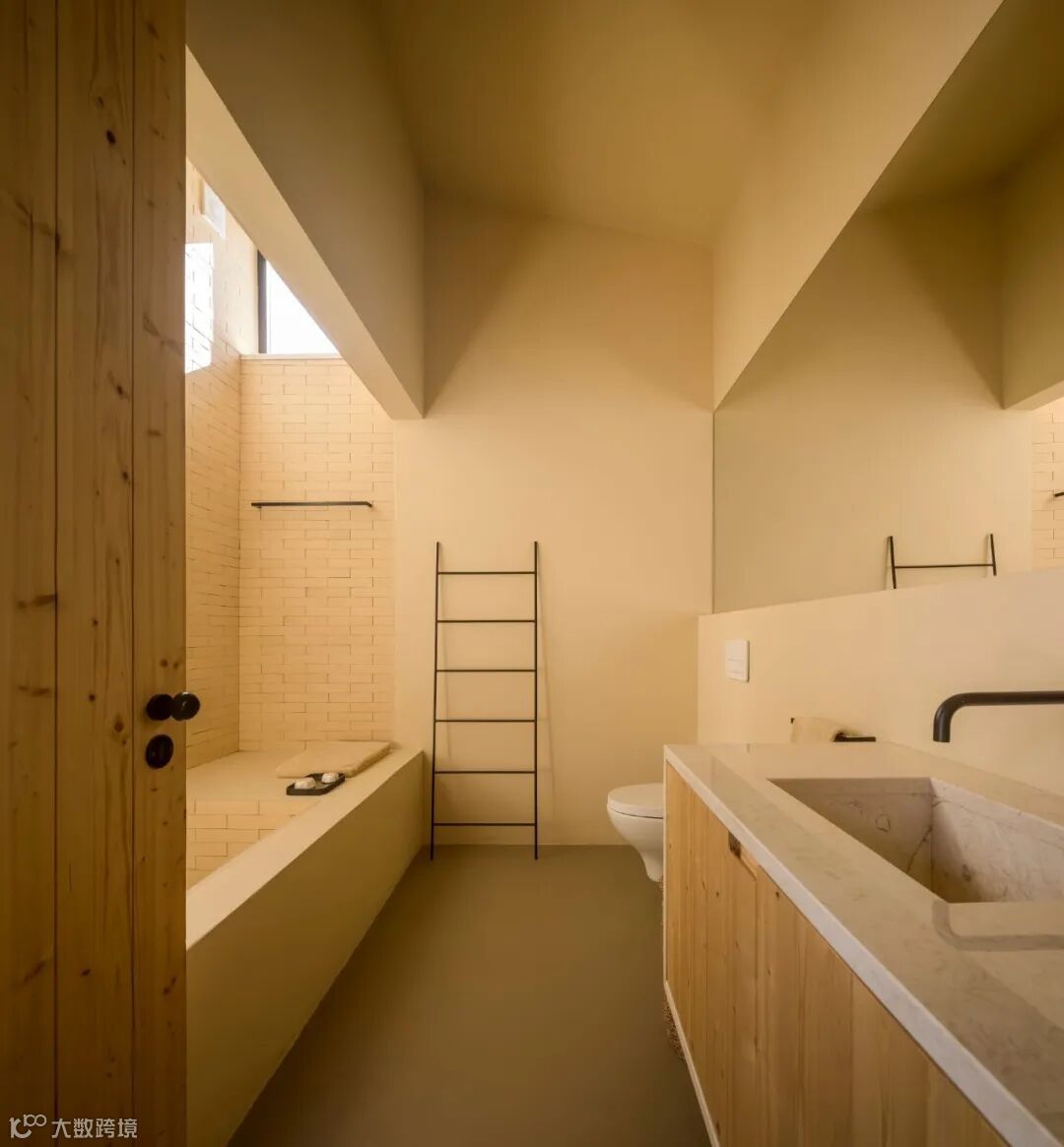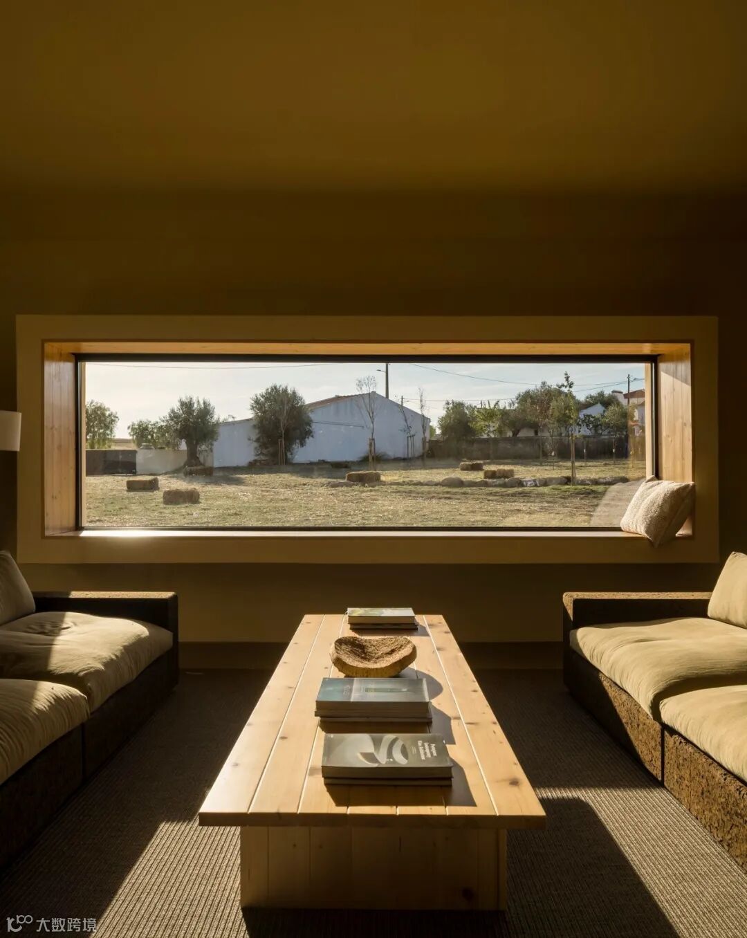 设计团队将起居室和餐厅等社交区域与卧室分离,通过一条紧靠边界的窄廊串联两个体块。土地的暖黄色被选做住宅的主基调,与传统的瓦片屋顶相辅相成,勾勒出自然且质朴的乡村生活。