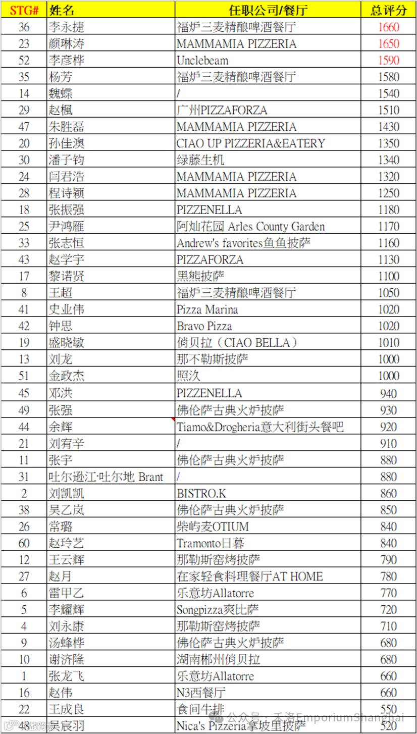 2024年第五届意大利拿坡里披萨CAPUTO CUP中国大赛赛会成绩: