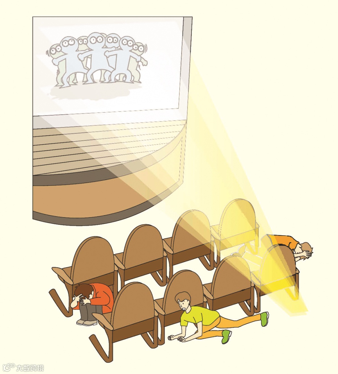 ③在影剧院、体育馆等处:就地蹲下或趴在排椅下;注意避开吊灯、电扇等悬挂物;用手或其他东西护住头部;听从工作人员指挥,震后有组织地撤离。