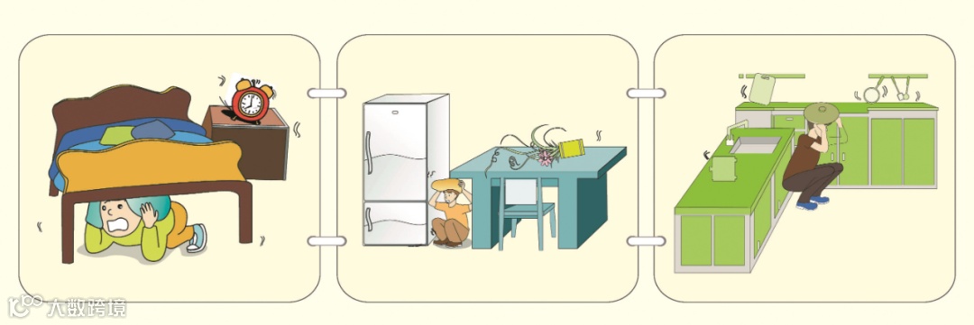 ② 震时要注意:迅速关闭电源、火源;千万不要滞留在床上;千万不能跳楼;不要到阳台上去;不要躲到外墙边或床边。