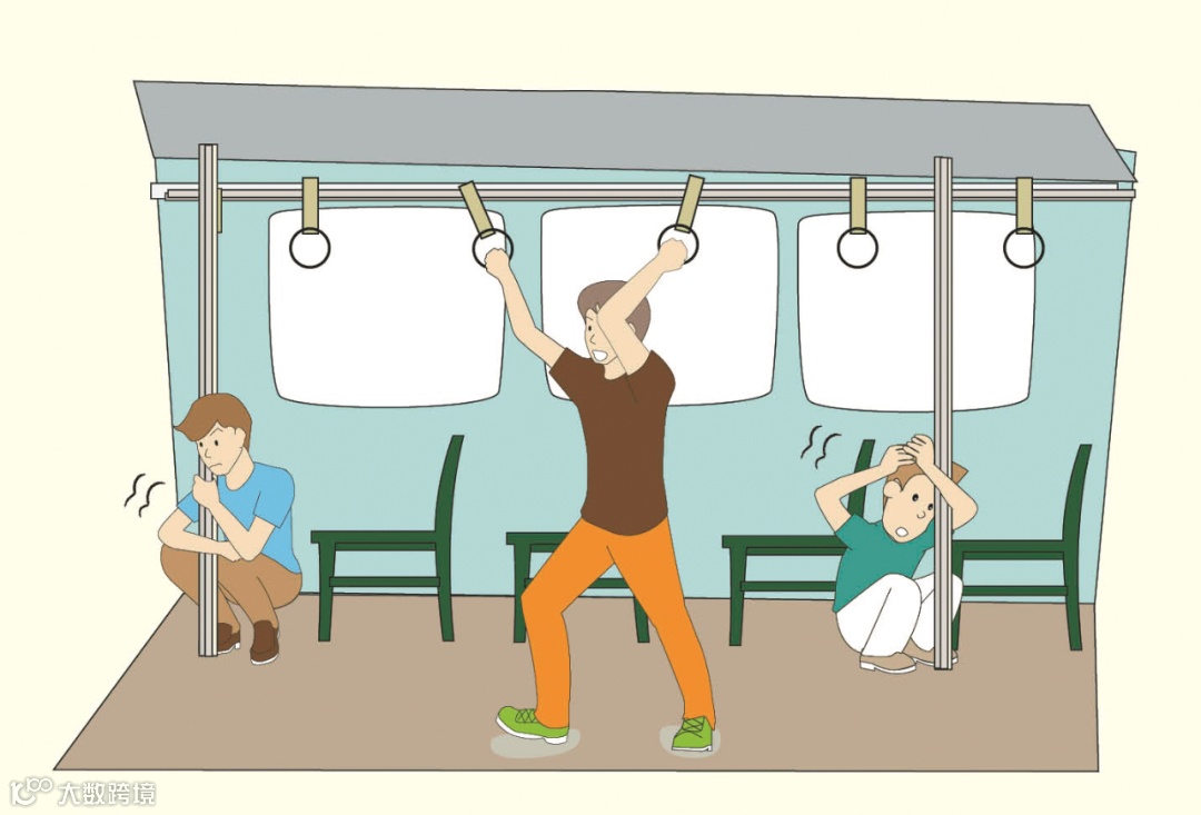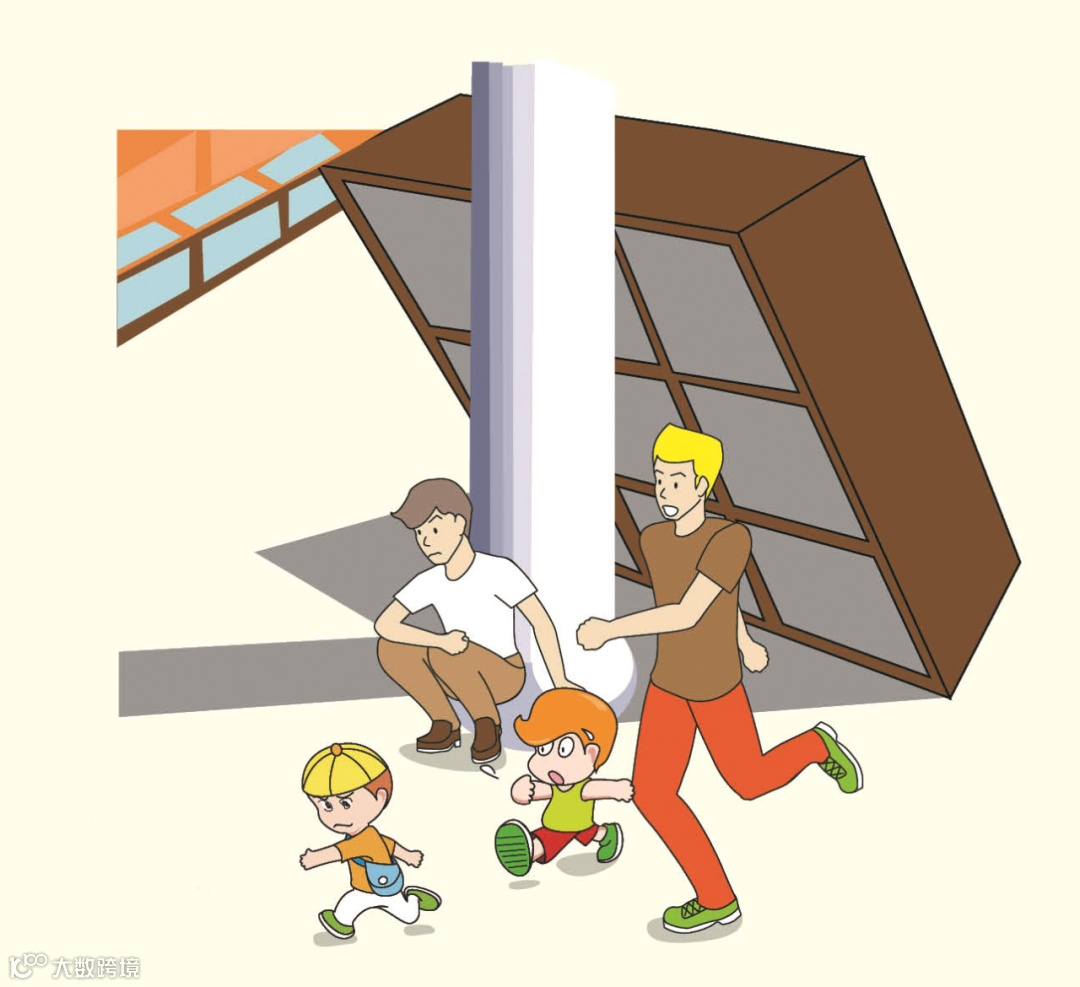 ③ 高楼的避震和撤离:平时选好柱子多、开间小的地方作为临时避震场所。从高楼撤离时应走安全通道,不要去乘电梯;如果震时在电梯里,应尽快离开;若打不开要蹲下,抓牢扶手。