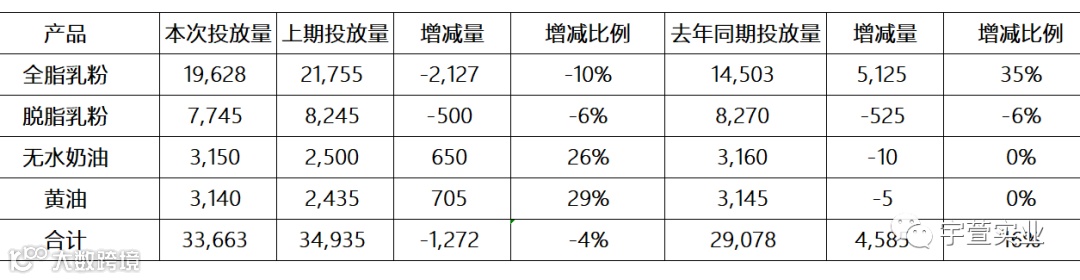 本次GDT拍卖脱脂乳粉价格上涨2.3%,均价2,724美元/公吨;全脂乳粉价格下降2.7%,均价2,971美元/公吨;黄油下调1.6%,均价4,890美元/公吨;无水奶油上涨3.1%,均价5,489美元/公吨,具体拍卖结果如下: