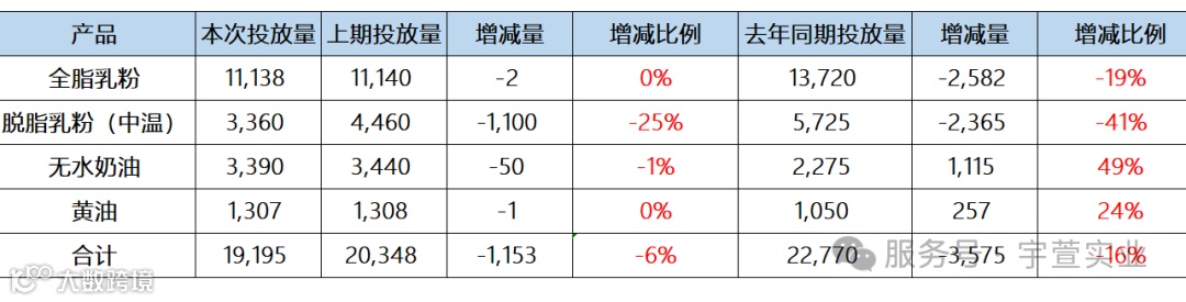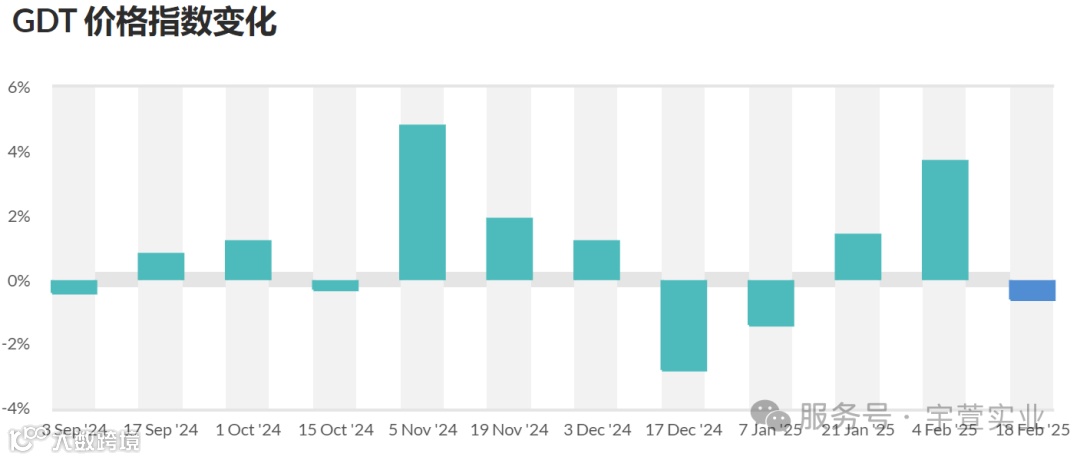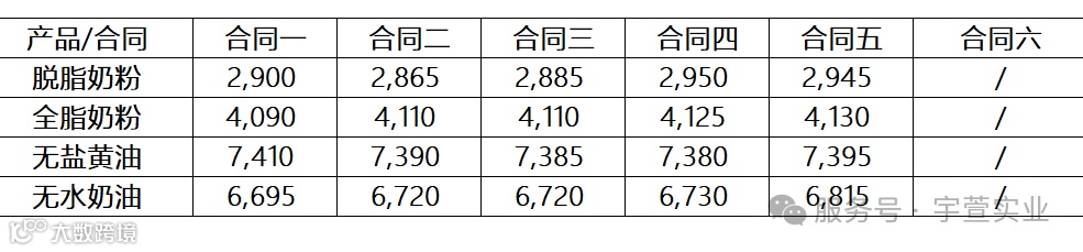 本次GDT拍卖脱脂乳粉价格下跌2.5%,均价2,754美元/公吨;全脂乳粉价格下跌0.2%,均价4,153美元/公吨;黄油价格上涨2.2%,均价7,378美元/公吨;无水奶油下跌0.8%,均价6,723美元/公吨。具体拍卖结果如下: