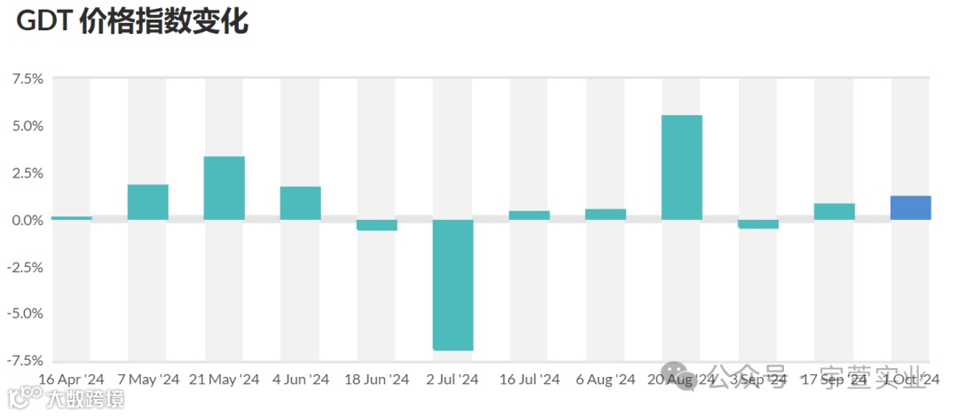 本次GDT脱脂乳粉价格略有下降,降幅0.6%,均价2,795美元/公吨;全脂乳粉价格上涨3.0%,均价3,559美元/公吨;黄油价格下跌1.4%,均价6,407美元/公吨;无水奶油下跌0.1%,均价7,213美元/公吨。具体拍卖结果如下: