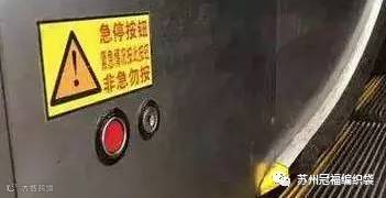自动扶梯一般在扶梯的上中下三个地方都有,一旦发生意外,应立即长按“急停”按钮,直到扶梯停止即可。