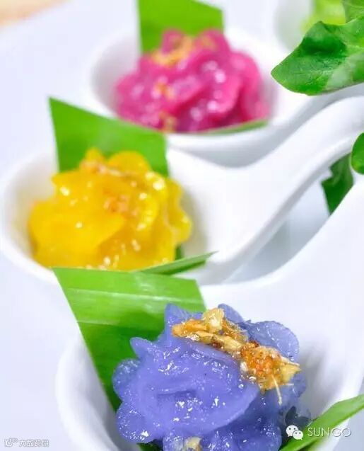 新加坡人都很爱花,每当有客人来访时,主人都会送上几束花,而且还会端来花汁浸染的粽子请客人来品尝。这种花汁粽子是用绿叶包成多角形状,只有鸡蛋那么大小,展开绿叶后,里面的粽子是由花汁染成淡绿色的米粉精制而成的,色泽诱人,吃起来味道清香可口。