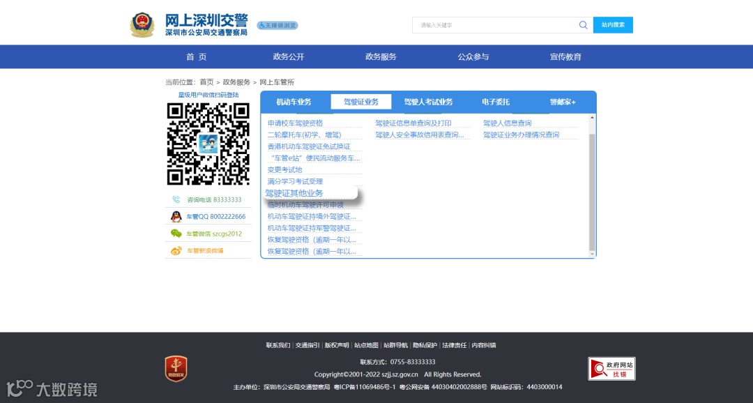 登录深圳交警网上车管所(szjj.sz.gov.cn/CGZL/)或关注“深圳交警”“深圳车管所”微信公众号 → 登录星级用户 → 更多业务 → 驾驶证业务 → 驾驶证其他业务;