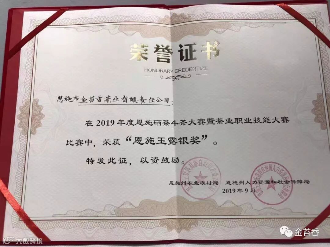 金苔香茶业在本次斗茶大赛中,以93.07的成绩荣获“恩施玉露银奖”。