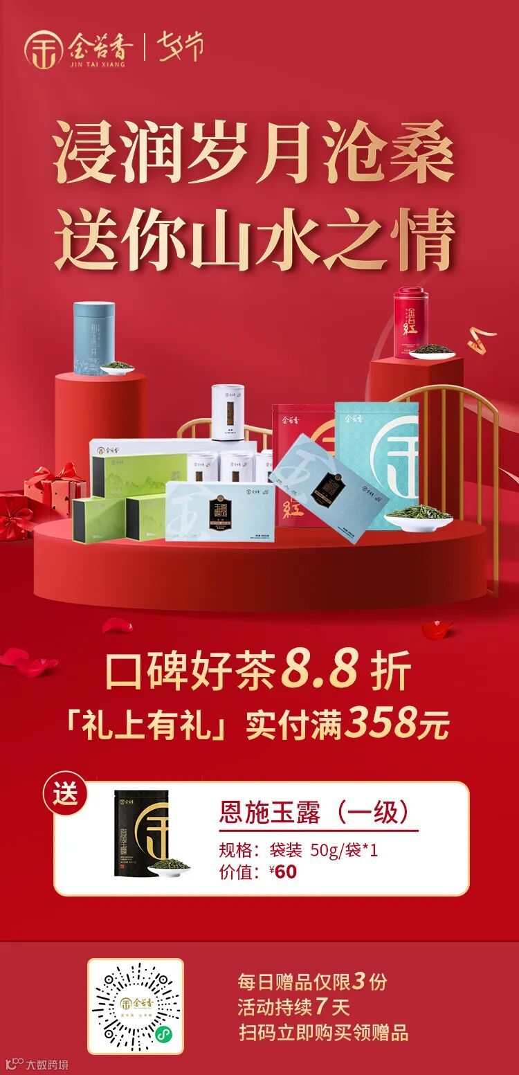 值此七夕佳节,金苔香特推出红茶、绿茶全场口碑好茶享优惠活动,为浪漫七夕增添色彩。