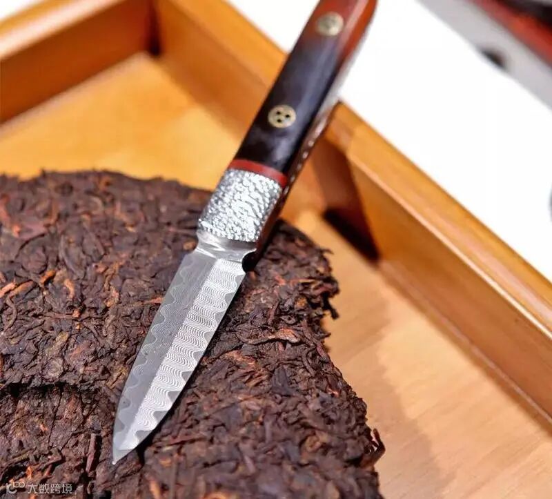 结构包括带有刀柄的刀体及刀鞘,利用刀体前端的尖刃可顺利的插入茶饼内,以此沿被切轨迹重复上述方法。