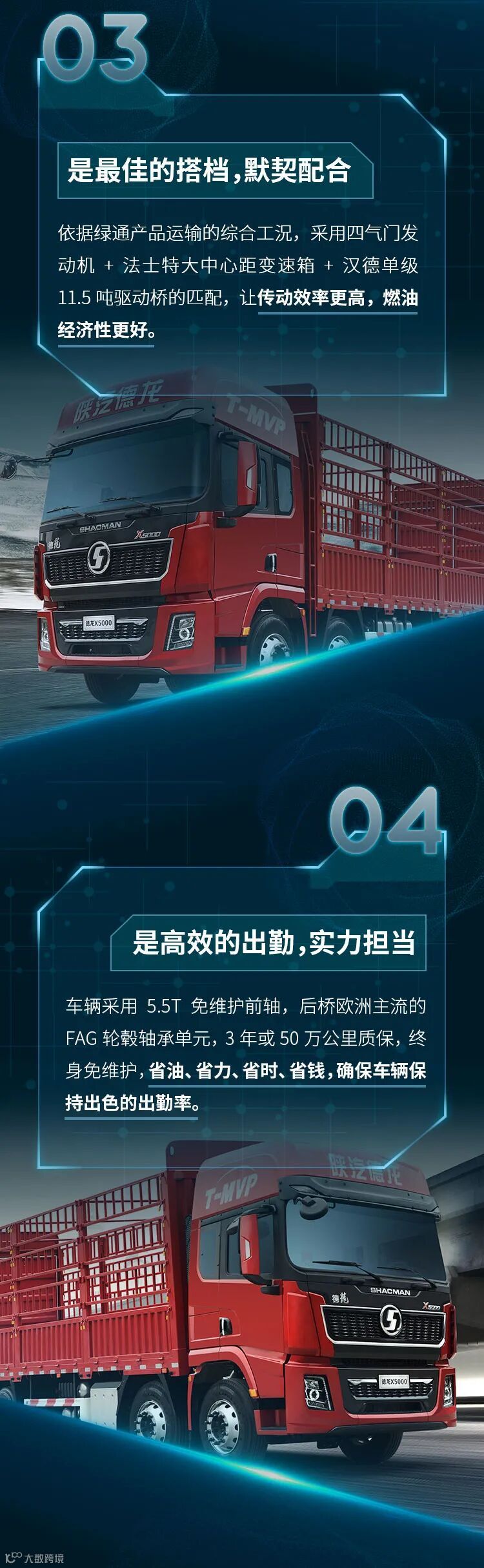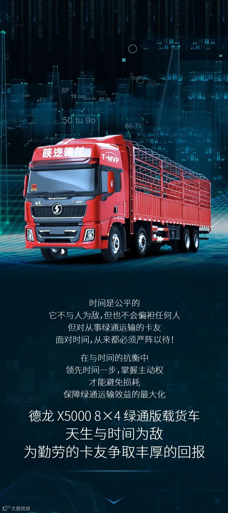 导读:德龙X5000 8×4 绿通版载货车:天生与时间为敌!