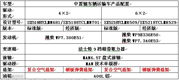 中置轴车辆运输车-底盘版本细分为标准版、经济版,满足不同端次的客户群体需求。