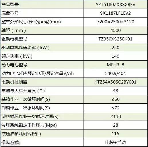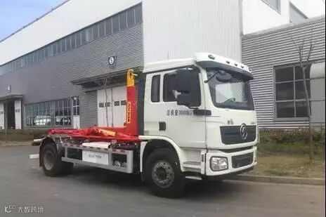 陕汽纯电动车厢可卸式垃圾车可以根据实际需要配备多个垃圾箱,该车采用SX1187LF1EV2型纯电动汽车底盘,加装密封式车厢、吊臂等组成,专用装置的工作全部采用液压传动,采用电控和手动操作。本车装卸垃圾箱体及倾倒垃圾的工作过程通过吊臂伸缩、变幅实现的,装卸过程平稳、安全、机械化作业程度高,具有操作方便、装载量大等特点,是理想的城市垃圾运输工具。