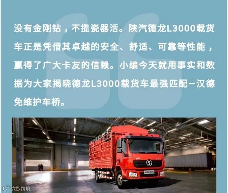 导读:没有金刚钻,不揽瓷器活。陕汽德龙L3000载货车正是凭借其卓越的安全、舒适、可靠等性能,赢得了广大卡友的信赖。
