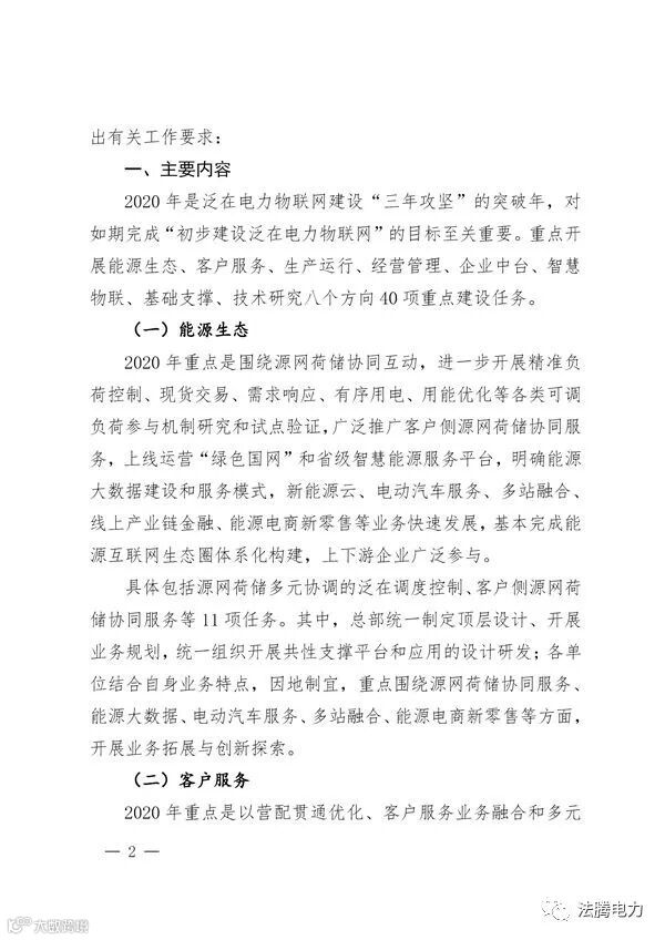 日前,国家电网公司印发了《泛在电力物联网2020年重点建设任务大纲》,大纲表示,2020年是泛在电力物联网建设“三年攻坚”的突破年,对如期完成“初步建设泛在电力物联网”的目标至关重要。国家电网将重点开展能源生态、客户服务、生产运行、经营管理、企业中台、智慧物联、基础支撑、技术研究8个方向40项重点建设任务。