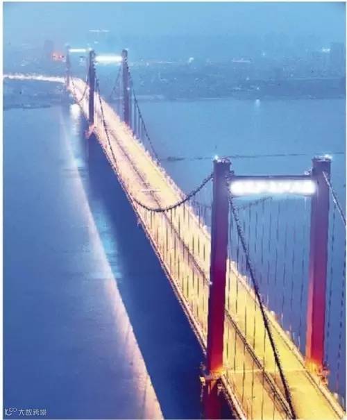 ▲图为湖北武汉鹦鹉洲长江大桥,是世界同类桥梁中跨度最大的三塔四跨悬索桥。