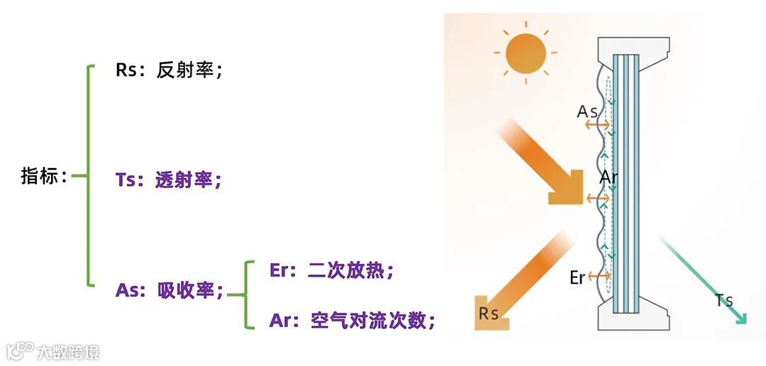 由上图可看出,与传统的室内遮阳相比,因为太阳辐射在外遮阳设施的阻隔后,被遮阳设施反射、吸收,只有很少部分透过遮阳设施到达建筑表面,因此,外遮阳的节能效果非常显著,被认为是最理想的被动节能措施。