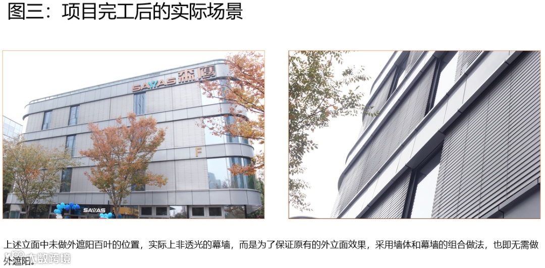 建成后的现场实际场景照片如下图三:有图可见,项目使用外遮阳百叶,并无“违和感”。