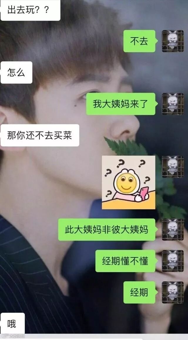 2、当你告诉他大姨妈来了