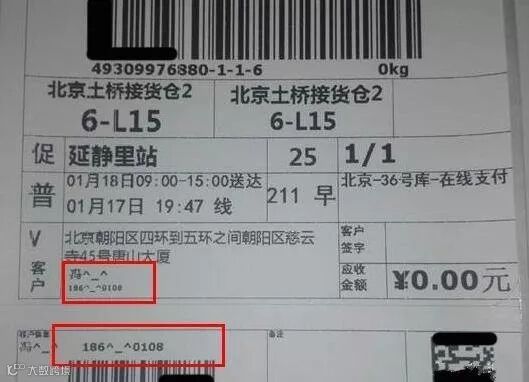 这就是隐私面单,隐藏了快递单上的部分个人信息,从而达到加密效果,防止其他人从单子上窃取消费者的个人隐私。
