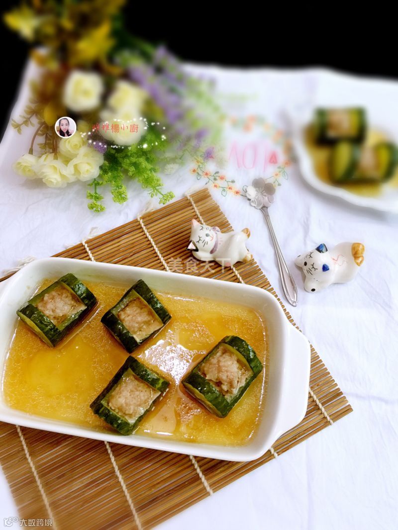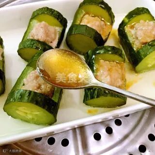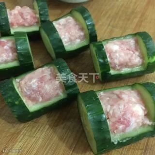 黄瓜1根、肉末100克、家乐鸡粉1小勺、盐1/4勺、生抽1小勺、蚝油1小勺、玉米淀粉少许。