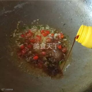 5、锅中热油放入辣椒,蒜爆香,然后加入盐,白糖。