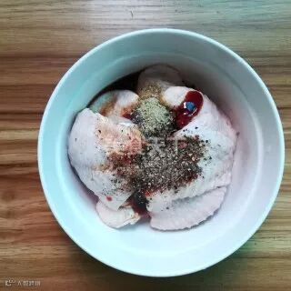 3、处理好的鸡翅加入调味粉、蚝油、生抽和盐。