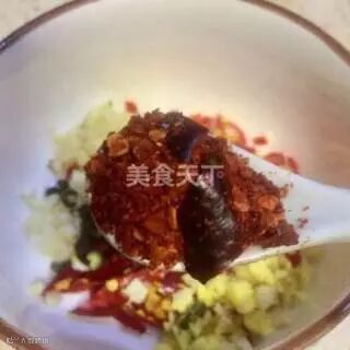 2、肉末剁的时候加鸡粉的同时加一小勺水和少许盐剁均匀即可。
