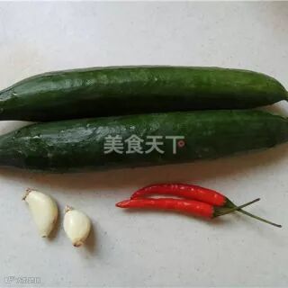 黄瓜450g、白糖20g、醋10g、辣椒2只、蒜2瓣、盐 / 油适量。