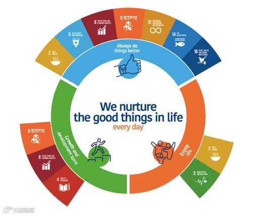 联合国的可持续发展目标将作为爱阁食品的指导方针,以“每天蕴育生活中的美好事物”为主要目标,来管理公司的可持续发展政策。其中还有三大支柱:在经济,社会和环境领域“总是做得更好”; 在员工、供应商和经营环境中促进“成长精神”; 以及邀请客户、消费者和社区邻里来一起“享受生活”。