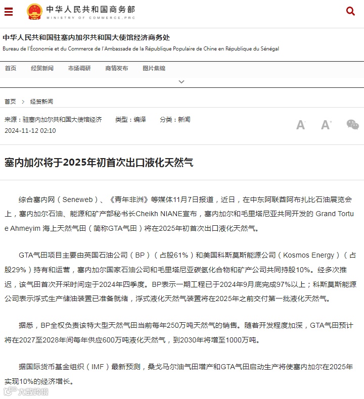 据国际货币基金组织(IMF)最新预测,桑戈马尔油气田增产和GTA气田启动生产将使塞内加尔在2025年实现10%的经济增长。