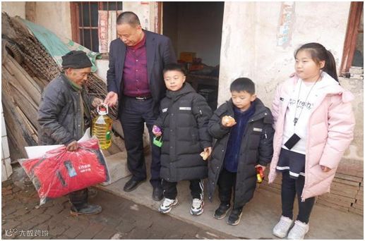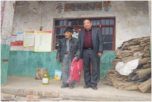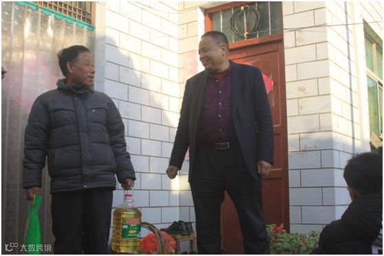 董事长高留斌在青山村邢红旗书记陪同下走街串户慰问