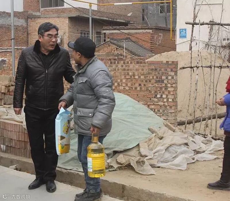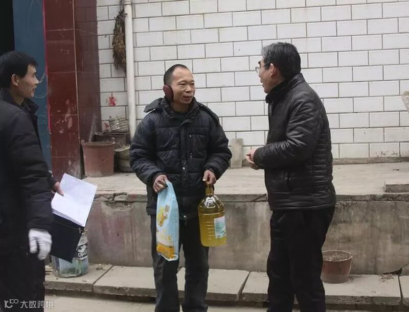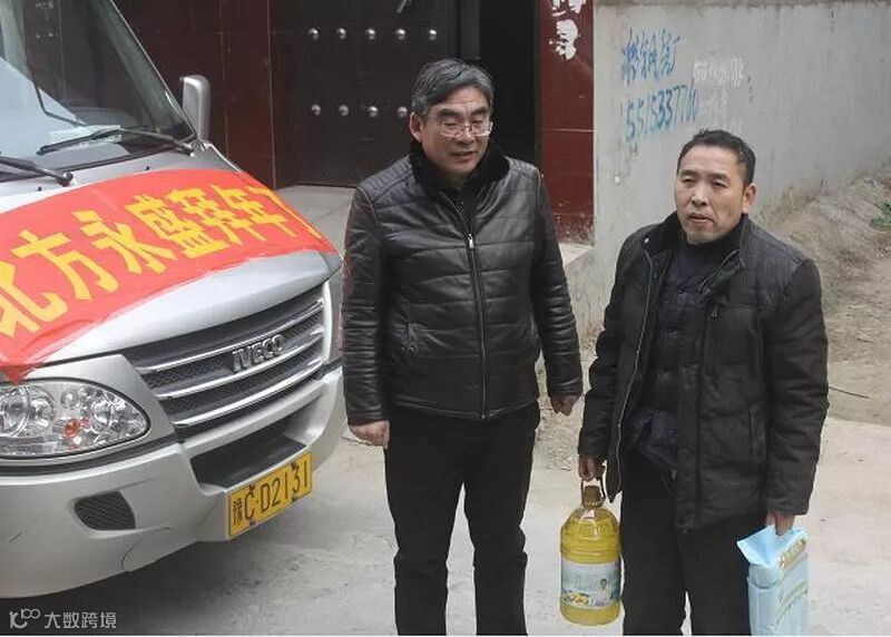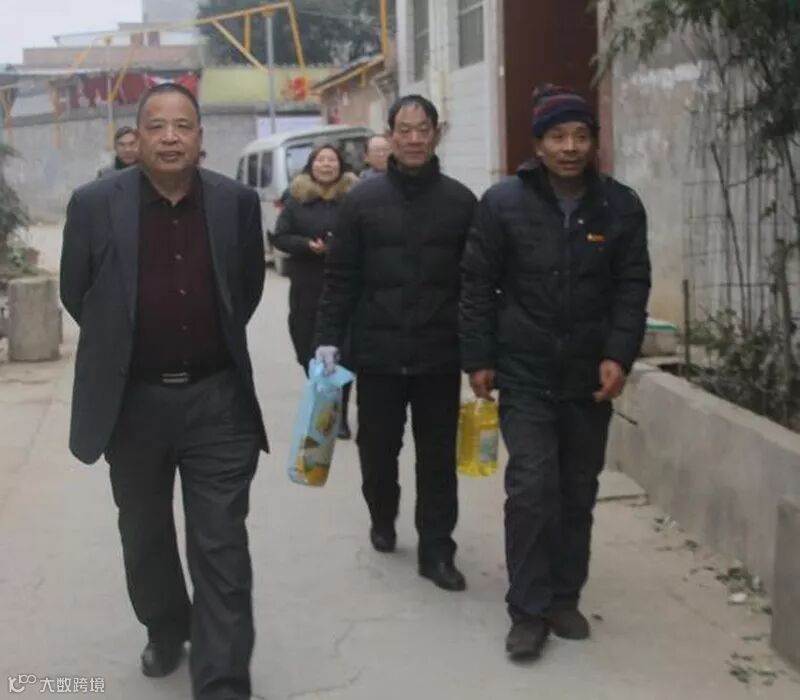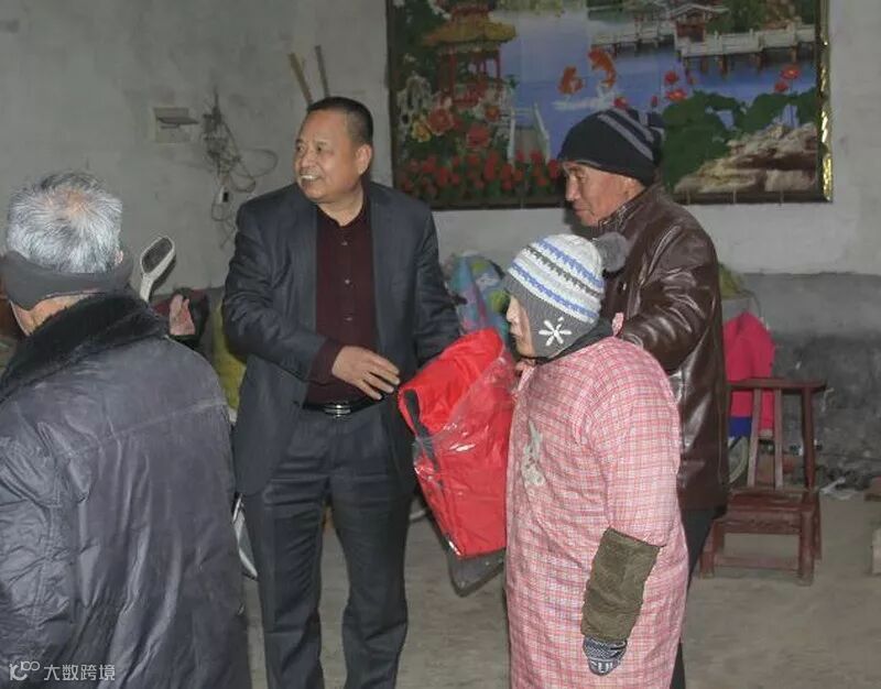 董事长高留斌在迎接参访团结束后,不辞辛苦,驱车100多公里到嵩县田湖镇洒落村,亲自到贫困职工廉明杰家中慰问,送慰问金、送米、送油、送棉衣。