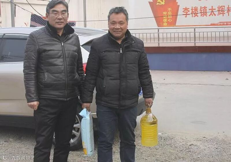 董事长高留斌到西高村困难职工王改卫家里慰问,送油、送米。