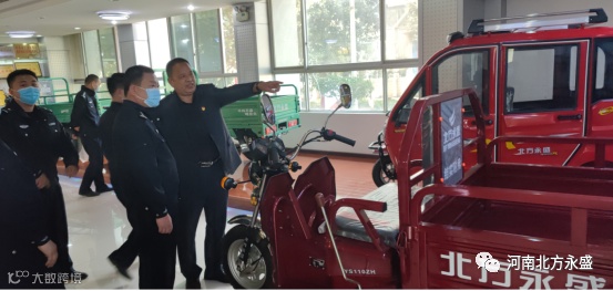 公司党委书记兼董事长高留斌在展厅为洛龙分局领导和同志们介绍公司产品